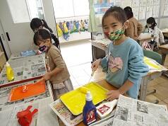 まず「黄ぶな」の歴史や色の意味,作り方についての話を聞き,次に見本を見ながら一人一個色を塗りました。「黄ぶな」は,疫病から市民を守ると言われています。子供たちは,家族やみんなの健康を祈りながら制作しました。色鮮やかな黄ぶなが完成すると,みんな大満足そうな表情で,楽しかった,またやりたいと話していました。