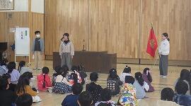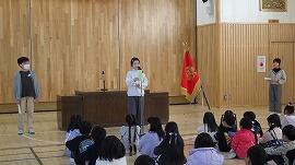 創立記念式を体育館で行いました。校長からは,本校の151年にわたる輝かしい歴史を振り返る話がありました。「この歴史ある素晴らしい学校を,子供たちや先生,保護者の方々,そして地域の皆様と力を合わせて大切に守り,さらに発展させていこう」という思いを全校で共有し,学校への愛着と誇りを一層高める機会となりました。当初予定しておりました「かまどの会」の皆様による民話の語りは,都合によりプログラムを変更し,6年生の児童による民話の語りを実施しました。発表された演目は,民話「三年坂」です。6年生の児童は,堂々とした話しぶりと表現力で物語を語り,全校児童と教職員は,その語りに静かに聞き入っていました。