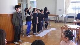 給食の時間に,給食委員の児童による「お話給食」が行われました。今日のお話は,「パンどろぼうとりんごかめん」 このお話は,今日の献立にある「クリームフルーツサンド」にちなんで選ばれたものです。物語と献立が結びつくことで,食への興味も深まり,笑顔あふれる給食の時間となりました。