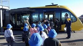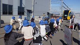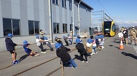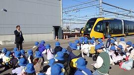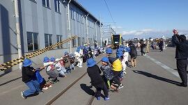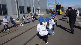 全校児童で宇都宮ライトレール(LRT)の車両基地見学を実施しました。好天に恵まれ,笑顔あふれる,思い出に残る校外学習となりました。学校から近くの基地までは,皆で安全に歩いて向かいました。LRT基地職員の皆様の温かいお出迎えをいただき,見学がスタートしました。まずはLRT車両に全員が乗車させていただき,基地内を特別に往復。次は,LRTとの綱引き対決です。3・4年生チーム,1・6年生チーム,2・5年生チーム,先生チーム,最後は希望者チームの5回戦,協力してLRTに挑みました。どの対戦も白熱した接戦となりましたが,力を合わせ,見事,全チームが勝利を収めることができました。最後に,車両整備基地を見学させていただき,LRTが安全に運行するための仕組みや,整備士さんのお仕事について説明を受けました。子供たちにとって,地域の新しい交通手段であるLRTを間近で見て,触れて,学ぶ,大変貴重な一日となりました。快く全校児童の見学を引き受けてくださいましたLRT基地の職員の皆様,ありがとうございました。