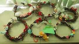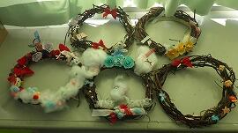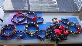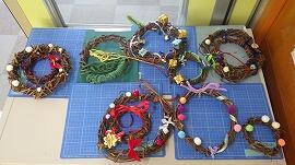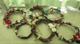 10月に収穫したサツマイモのつるを利用して,1・2年生がクリスマスリースを作りました。先生たちが事前に準備したサツマイモのつるの土台に,子供たちが思い思いの材料で飾り付け。アイディアが詰まった作品が教室を華やかに彩っています。