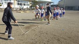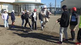12月19日(金)の「平央タイム」は,クラスごとに長縄の八の字跳びの練習を行いました。今月から本格的にスタートしたこの練習。各学年とも,声を掛け合いながら少しずつ上達してきています。 特に高学年になると,縄を回すスピードが一段と速くなり,リズムよく連続して跳ぶ姿が見られ,下級生のお手本となっていました。