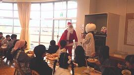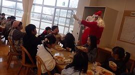 今年最後の給食は,クリスマスメニューでした。ケーキやドーナツなど,子供たちがセレクトしたものをサンタクロースや雪だるま,トナカイから手渡されました。突然の登場で,みんな驚きを隠せませんでした。その後は,みんな笑顔で,今年最後の給食をおいしく味わっていました。