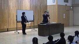 冬休み前の全校集会を行いました。表彰では,多くの子供たちが素晴らしい成果を収めていました。また,本校が「よい歯の優良学校コンクール」において優良学校として表彰されました。校長講話では,子供たちに清々しい気持ちで新しい年をスタートできるよう,3つの実践を呼びかけました。身の回りをきれいに掃除し,心地よい環境をつくる。今年立てた目標に最後まで挑戦し,達成感を味わう。周囲の方々へ感謝を伝える。ご家庭でもぜひ,これまでの子供たちの努力や頑張りを振り返っていただければと思います。児童指導主任からは,冬休み中の安全な過ごし方についての話がありました。