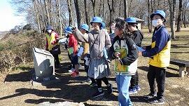 2月12日(木),5年生の2泊3日の冒険活動教室がスタートしました。初日は,広大な敷地を巡る「園内オリエンテーリング」と,チームの絆が試される「イニシアティブゲーム」を行いました。一人では解決できない高い壁や課題に挑むこのゲーム。始めは苦戦していましたが,クラスメートと相談し,試行錯誤しながら協力して課題を達成していました。困難な場面でも励まし合い,チームワークの輝きが見られました。