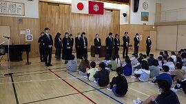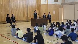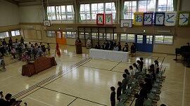 校庭の桜や花壇の花々が美しく咲き誇り,春の心地よい陽気の中,元気に登校する子供たちを迎えることができました。第1校時には,新しくお迎えした先生方を紹介する「着任式」と,新学期の始まりとなる「始業式」を行いました。式に臨む子供たちの表情からは,進級した喜びと,新しい先生方との出会いに対する期待で胸を膨らませている様子が伝わってきました。保護者の皆様,地域の皆様,本年度も本校の教育活動へのご理解とご協力をどうぞよろしくお願いいたします。