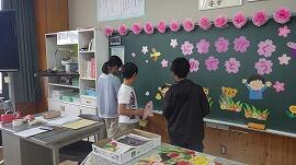 明日4月10日(金)の入学式に向け,5校時に4〜6年生の児童が準備を行いました。会場の清掃や椅子並べ,教室の装飾に一生懸命取り組む姿からは,上級生としての頼もしさが伝わってきました。おかげさまで,16名の新入生を温かく迎え入れる準備が整いました。明日のご入学を心よりお待ちしております。
