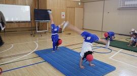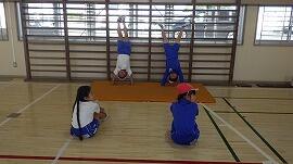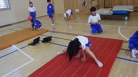 3年生の体育は,マット運動に取り組んでいます。子供たちは意欲的に練習に励んでおり,少しずついろいろな技ができるようになってきました。今回の目標は「開脚前転」の習得です。技のポイントがよくわかる動画を視聴したり,タブレットを使って自分の動きを撮影し確認したりしながら練習に取り組みました。自分の動きを客観的に見ることで,技の向上につなげることができています。