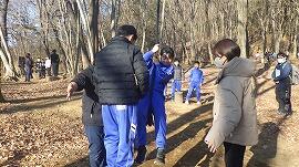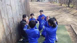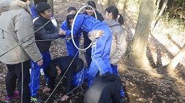 2月12日(木),5年生の2泊3日の冒険活動教室がスタートしました。初日は,広大な敷地を巡る「園内オリエンテーリング」と,チームの絆が試される「イニシアティブゲーム」を行いました。一人では解決できない高い壁や課題に挑むこのゲーム。始めは苦戦していましたが,クラスメートと相談し,試行錯誤しながら協力して課題を達成していました。困難な場面でも励まし合い,チームワークの輝きが見られました。