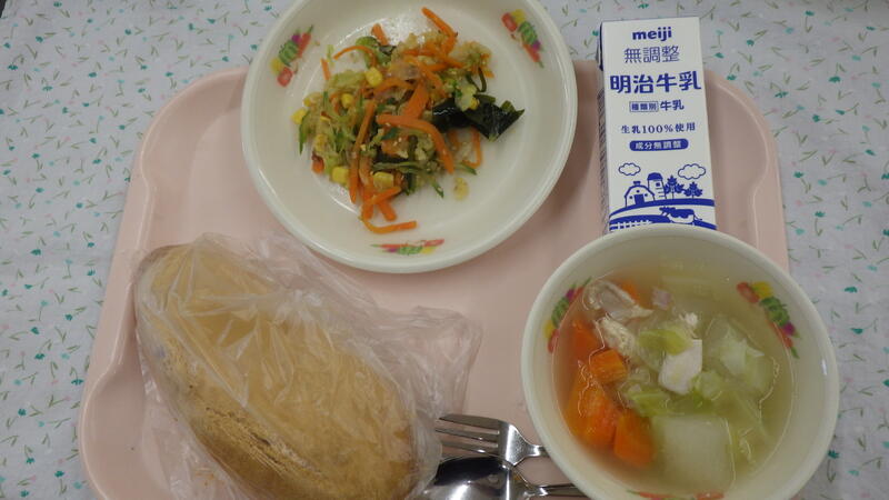 「ココアが良かった。」「きなこ嫌い」などの意見がでましたが、今日はきなこ味の揚げパンでした。