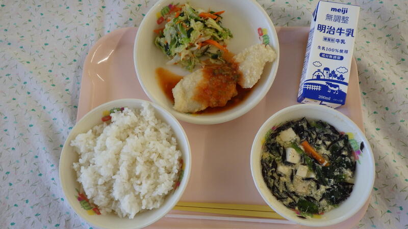 今日の給食は、苦手克服メニュー(魚)を実施しました。