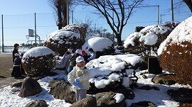 2月9日(月),1年生が元気に雪遊びを楽しみました。 休日に降った雪が,校庭の隅に残っていました。子供たちにとっては,それが最高のご褒美です。雪の感触を楽しみながら,小さな雪だるまや,かわいい動物を一生懸命に作っていました。自然がつくる不思議さや面白さを肌で感じる大切な時間となりました。
