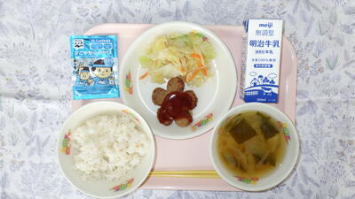 ハンバーグ(ケチャップソース) ゆで野菜 わかめの味噌汁