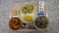 牛乳 コッペパン りんごジャム さつまいものシチュー ゆで野菜