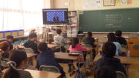 校長先生が,学校や地域の歴史についてスライドを用いて説明やクイズを行ってくださいました。また,以前の校舎の屋根瓦を紹介くださり,今後,休み時間に校長室を訪問して,実物を見せてもらう子どもたちがたくさんいそうです。