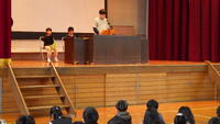 3時間目は,平石北小の卒業生であるバレーボール選手(レーヴィス栃木・東部建設株式会社)の横山龍二さんを講師としてお迎えし,生き方講演会を行いました。小学2年生から現在までのバレーボールを通した豊富な経験をもとに,あきらめずに頑張ることや友達と協力することの大切さなどについて話をしていただきました。また,平石北小の児童とともに,サーブやスパイクの実演をしてくださいました。皆,横山さんの素晴らしいプレーに感動し,目標をもって努力することへの意欲を高めたことと思います。ご家庭でも講演会について話題にしてみてください。