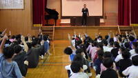 約60人ものオーケストラが,テレビで耳にしたことがある名曲や音楽の授業で聴いた曲などを演奏してくれました。有名なフレーズが演奏されるたびに,児童たちは嬉しそうに体を揺らし,笑顔がこぼれていました。楽器ごとの音色の違いや,それらが重なり合ったときの迫力ある演奏を楽しむことができました。また,3人の代表児童が実際にオーケストラの演奏を指揮したり,全校児童でオーケストラを伴奏に校歌を歌ったりするなど,音楽の素晴らしさを心に刻んだ1時間でした。