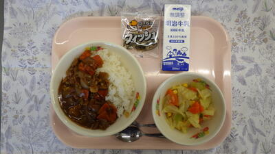 牛乳 ハヤシライス こんにゃくサラダ ミルクアイス