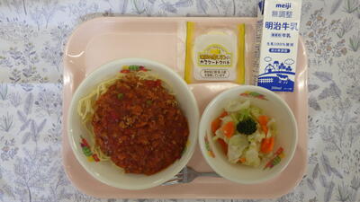 ミートソーススパゲティ フレンチサラダ レモンカスタードタルト