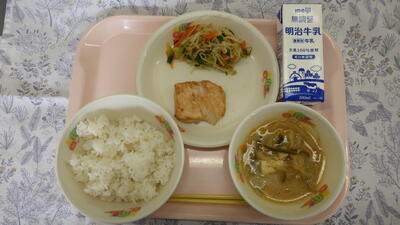 麦入りごはん 鯖の味噌煮 きゅうりのキムチあえ 豚肉とじゃがいもの煮つけ