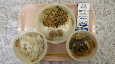 本日の給食 投稿日時 : 12/08 平石北小学校管理者 牛乳 麦入りごはん ポークしゅうまい にらと春雨の炒め物 豆腐の中華スープ {{options.likeCount}} {{options.likeCount}}