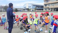 体の使い方やボールの扱い方を楽しくご指導くださり,体も心もぽかぽかになったところで,ボール蹴りゲーム「サッカー」を行いました。思い切り走り,大きな声で応援やあいさつをして,教室が終わる頃には,皆が笑顔いっぱいになりました。