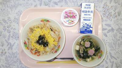 牛乳 五目ちらし寿司 あさりのすまし汁 三色ゼリー