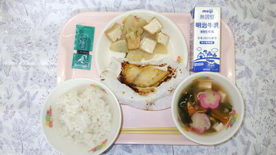 牛乳 麦入りごはん 白身魚の西京焼き