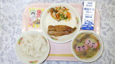 牛乳 麦入りごはん いわしのかば焼き 白菜の塩昆布和え