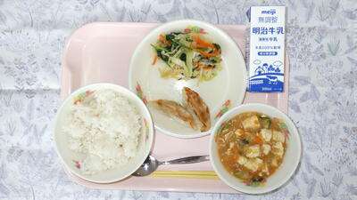 麦入りごはん 牛乳 焼き餃子 ナムル 麻婆豆腐