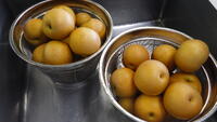 今日の「にっこり梨」は、平石地区で採れたものを納品してもらいました。とても大きなにっこり梨が届き、甘みもあり瑞々しく美味しくいただきました。