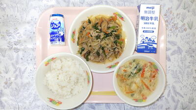 牛乳 麦入りごはん プルコギ風炒め物 豆腐のかきたま汁 ジョア