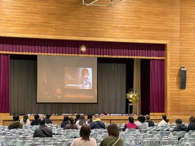 【1・2時間目】前日(11月14日)に執り行われました「創立70周年記念式典」および「記念講演」の様子を体育館で上映いたしました。