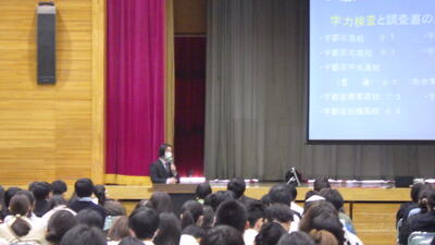 3年生の保護者の皆様を対象に「県立高校説明会」を兼ねた保護者会を実施いたしました。いよいよ本格化する進路選択に向け、県立高校の特色や入試制度について具体的な説明が行われました。