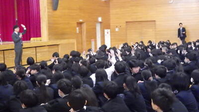 2/2(月)、警察スクールサポーターの伊藤様にご協力いただき、防犯対策避難訓練を行いました。 不審者役(伊藤様)が教室に侵入するという想定の中、生徒たちは冷静に机や椅子を運び、隙のないバリケードを完成させました。今回の訓練の大きな特徴は、不審者への対応をMeetでLIVE配信したことです。生徒たちは、不審者がどのように遠ざけられ、取り押さえられるのかをテレビ越しに見守り、緊迫感を持って訓練に参加しました。 今回の学びを忘れず、日頃から防犯意識を高めていきたいと思います。