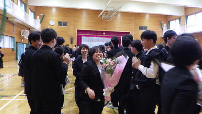 3月31日,離任式を執り行いました。 この度の異動により,21名の教職員が星が丘中学校を卒業することとなりました。離任する職員からの挨拶では,生徒たちとの思い出や感謝の言葉が語られ,温かいお別れの場となりました。保護者・地域の皆様,これまで離任職員に寄せられた温かいご支援に,心より感謝申し上げます。 先生方の新天地でのご活躍をお祈りしております。