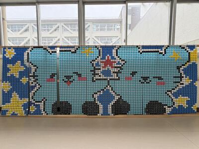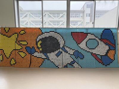 生徒会主導のもと,生徒一人ひとりがSDGsへの意識を高めながら取り組んだペットボトルキャップアートが完成しました。集められた無数のキャップが,各学年の個性あふれるデザインによって,鮮やかなアート作品として生まれ変わりました。 生徒たちのエコへの想いと共同制作の成果を,南校舎1階にてご覧いただけます。