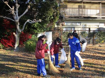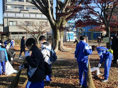 小学校の全市一斉土曜授業に合わせて行われた西小学校の清掃活動に中学生もボランティアとして参加しました