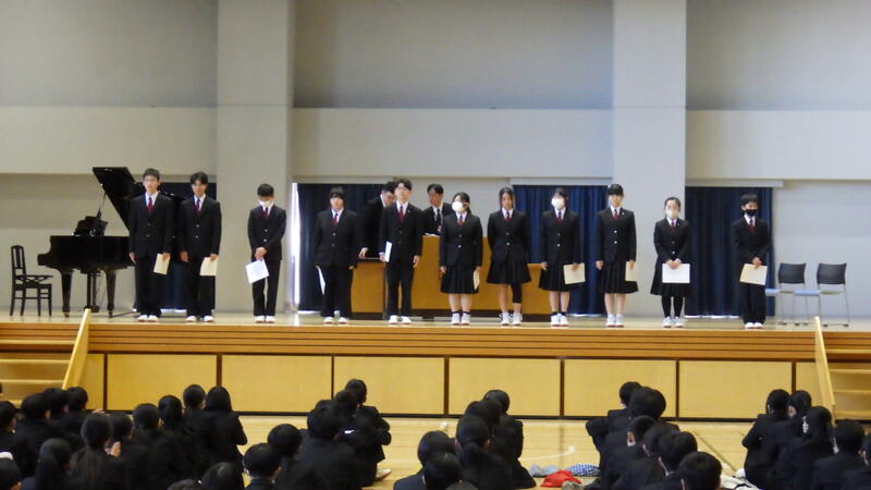 3年生が卒業し、次の生徒会スタートに向けて立会演説会・投票が行われました。12名の立候補者は、全員素晴らしい演説を聞かせてくれました。