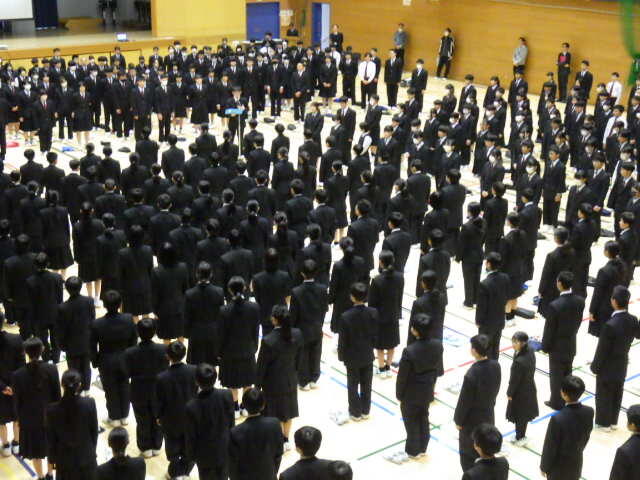 表彰式と同窓会入会式が行われました。そして、明日は卒業証書授与式です。3年生の中学校生活の最後の一日となります。