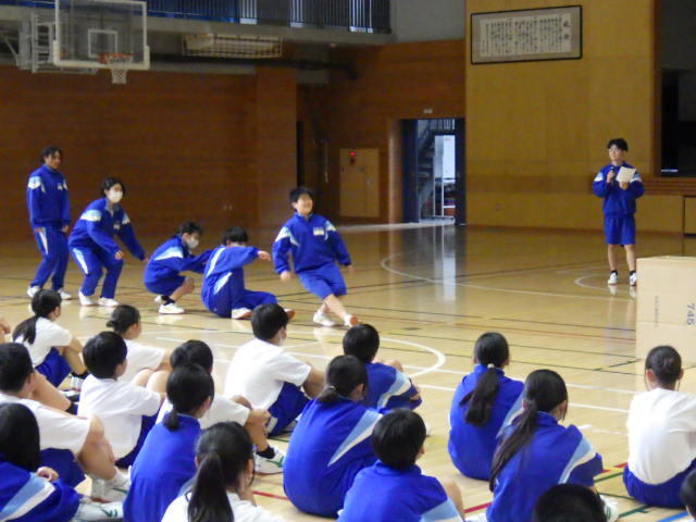 1年生の部活選びの参考に、と各部がアリーナで紹介を行いました。短い時間の中でしたが、それぞれの楽しさをアピールできました。
