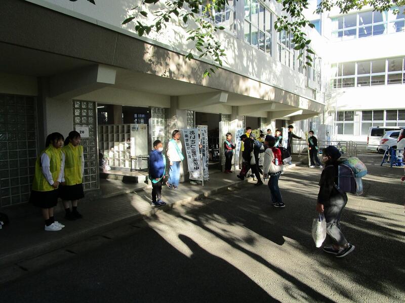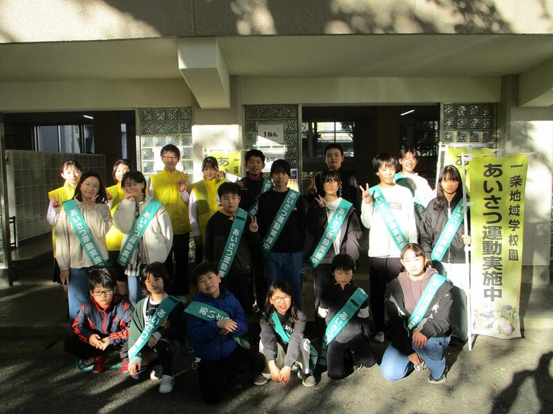 本日のあいさつ運動は、一条中学校と学校園内の3小学校合同で行いました