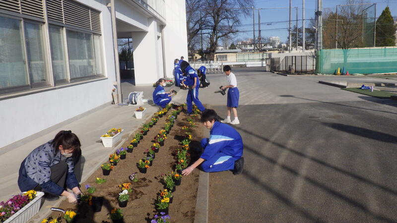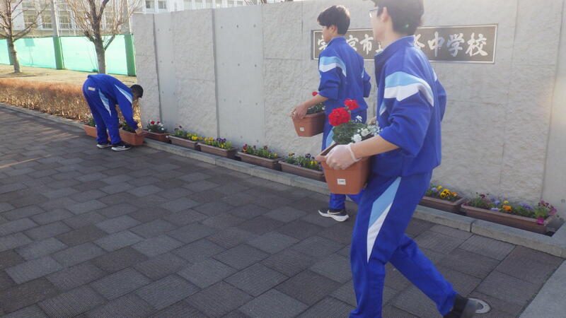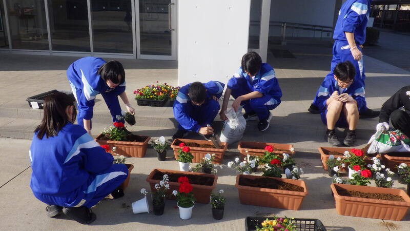 放課後の時間を利用して、緑化活動を行いました。校内の花壇にはたくさんの花が植えられ、学校生活に潤いを与えてくれます。正門外のプランターにもきれいな花が咲いており、道行く地域の方々に春の訪れが近づいていることを知らせています。