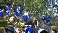 昨日までの雨がやみ、突き抜けるような空のもと、1学年の冒険活動教室が始まりました。参加者は皆元気で、意気揚々と登山に出掛けました。