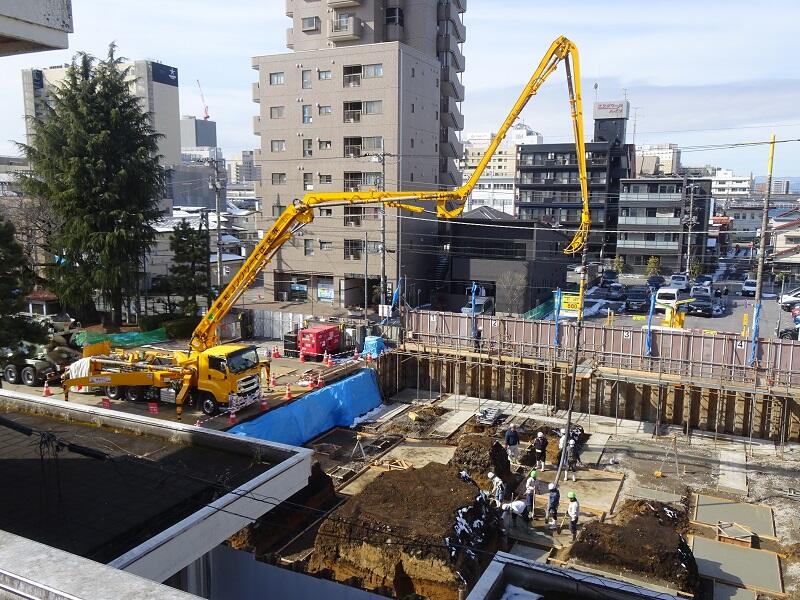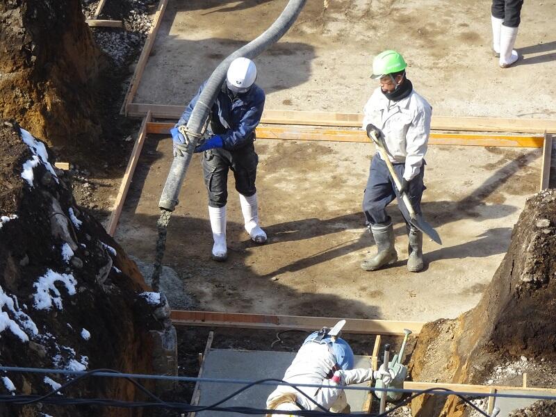 また,体育館建設予定地の南半分では,コンクリートを流し入れ,基礎の土台を強固にしています。