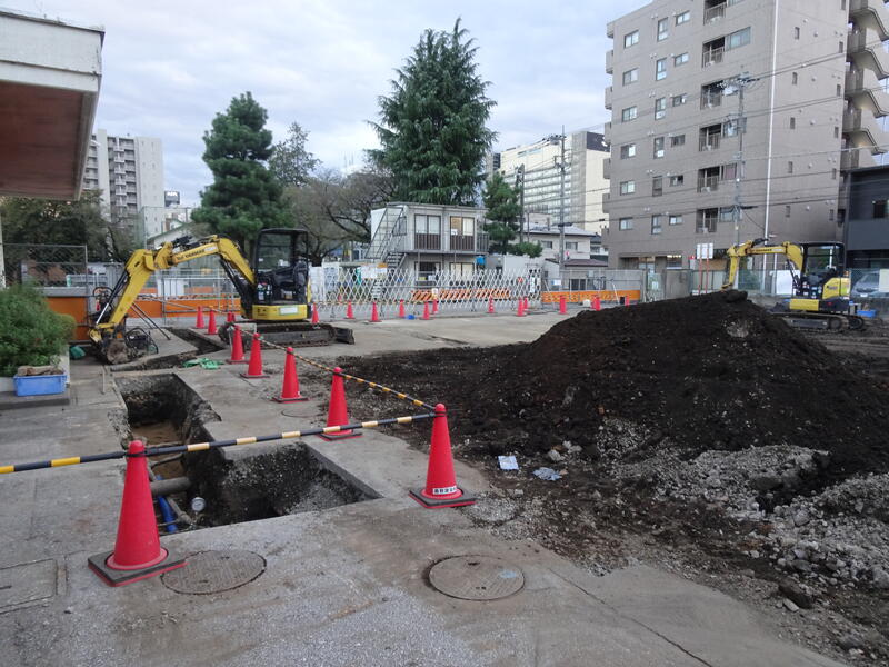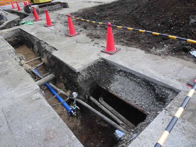 体育館の新築工事の邪魔にならないように,水道管を移動させます。