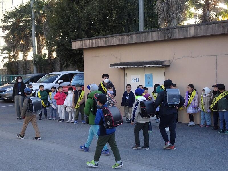 今日は,1年生の日です。上級生たちと一緒にあいさつ運動を行いました。