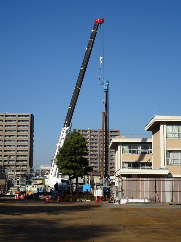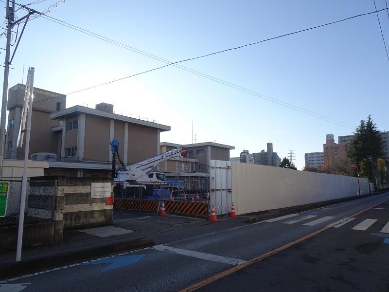 さらに,体育館が建設される場所も,鉄柱が運び込まれ,仮囲いを作る準備が始まりました。