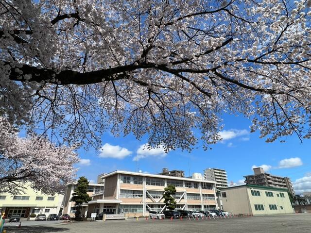 満開の桜が春風に揺れるさわやかな一日となりました。今日からいよいよ令和4年度がスタートしました。12日の入学式には112名の新入生をお迎えすることになっており、全校生597名となる予定です。保護者の皆様、地域の皆様、今年度もどうぞよろしくお願いいたします。