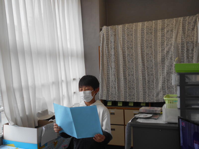 ▼6年生代表児童が、「新入生お迎えの言葉」で、今泉小の良いところを紹介しました。